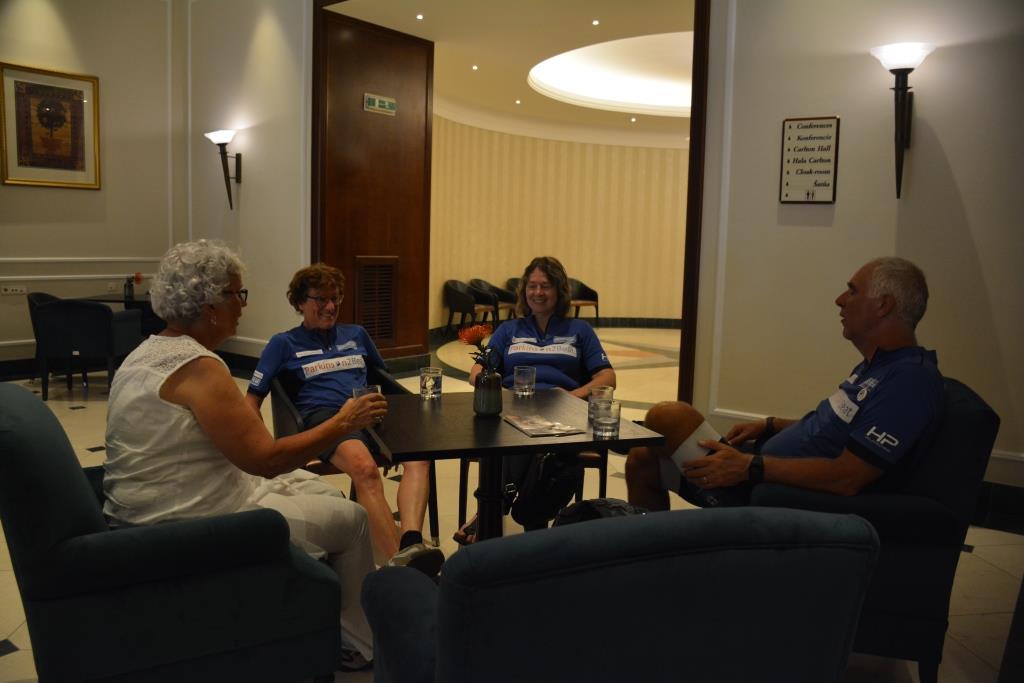 We werden overladen met T-shirts en speldjes in de vorm van rode tulpen. En aan het eind van de dag bleek ook nog dat Adorien en ik de eerste prijs hadden bij de dames. En Tirza met Melanie, een Slowaakse dame, de tweede prijs. En bij de heren hadden Ruud en Paulus ook de eerste prijs. We hebben dus de Nederlandse eer hoog gehouden.