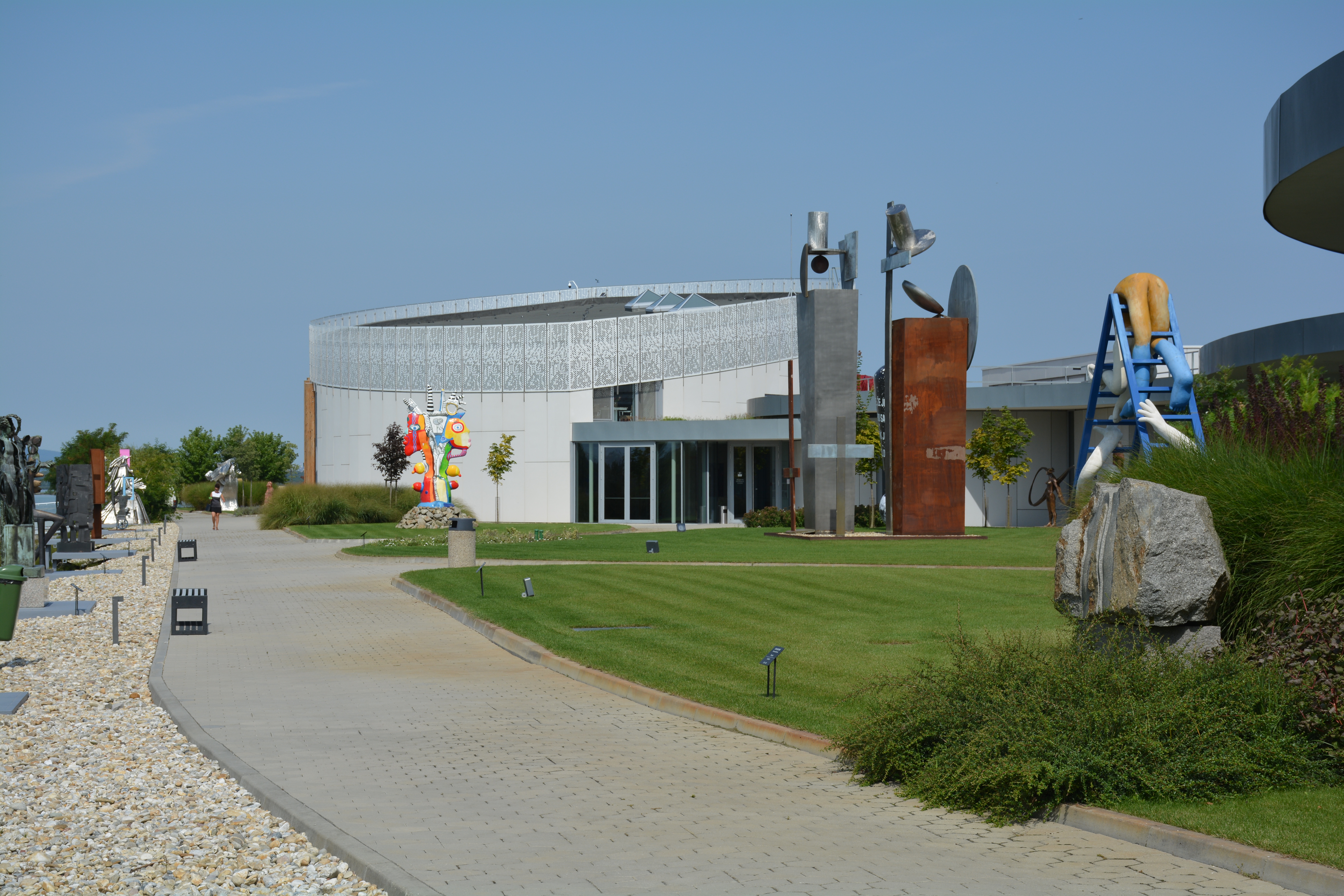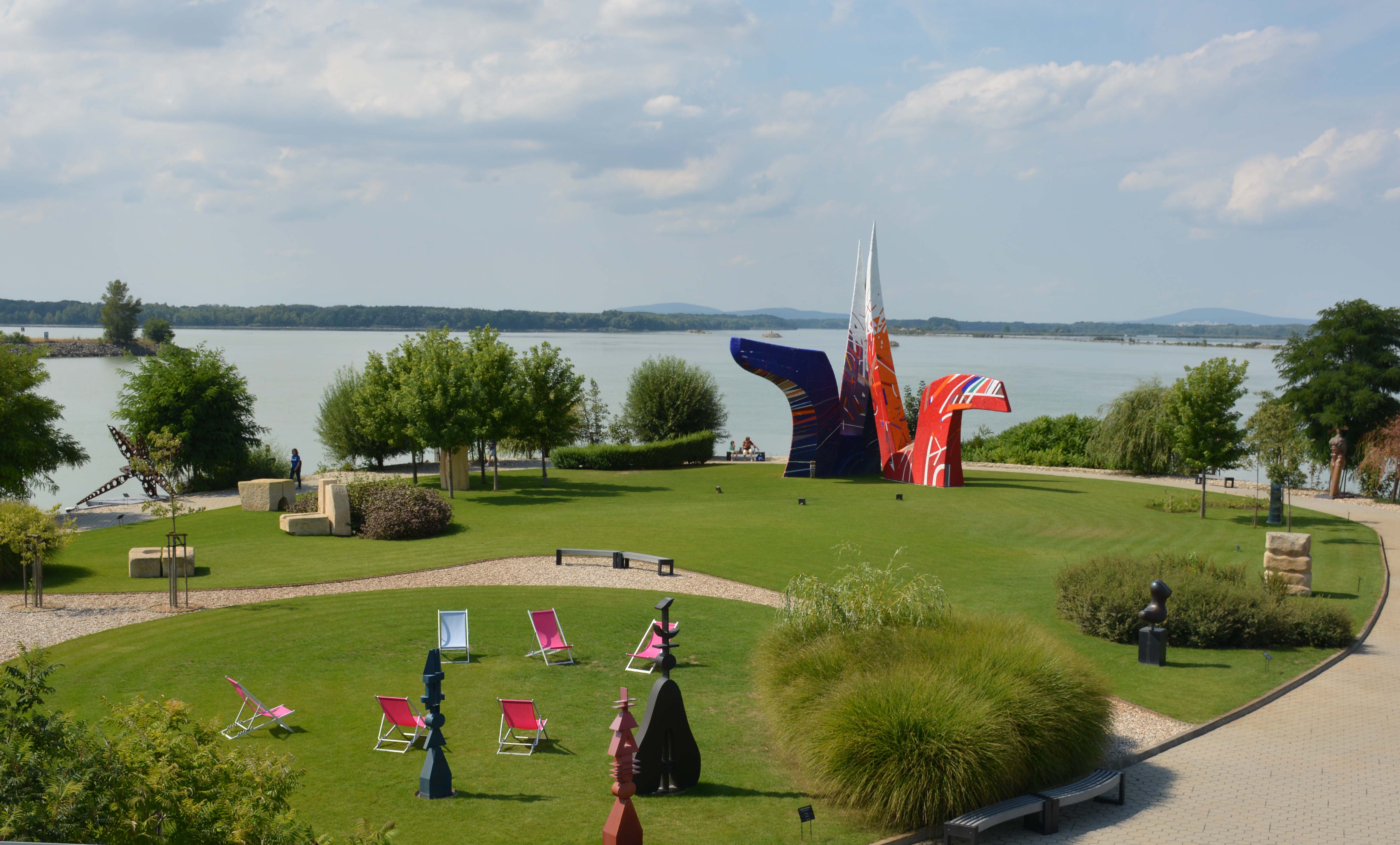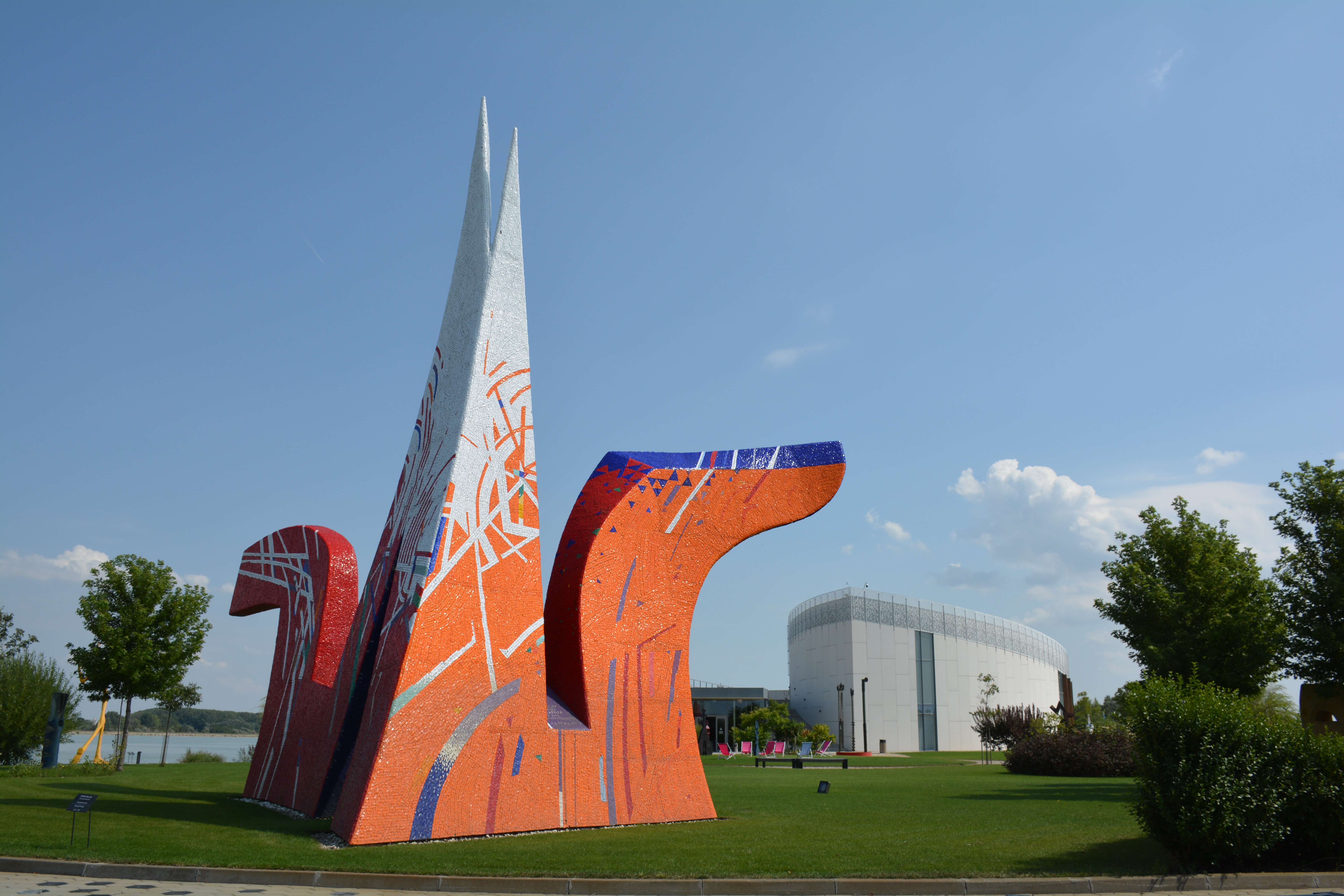 Dit museum is echt een topper, niet alleen door zijn collectie, met werken van Karel Appel en vele andere grote namen, en door de bezieling van de staf, maar verder ook door zijn architectuur en zijn bijzonder fraaie ligging op een (schier)eiland in de Donau. Je hebt voortdurend ook fraaie uitzichten naar de omgeving, zowel binnen het gebouw als buiten in de beeldentuin en op het dak.