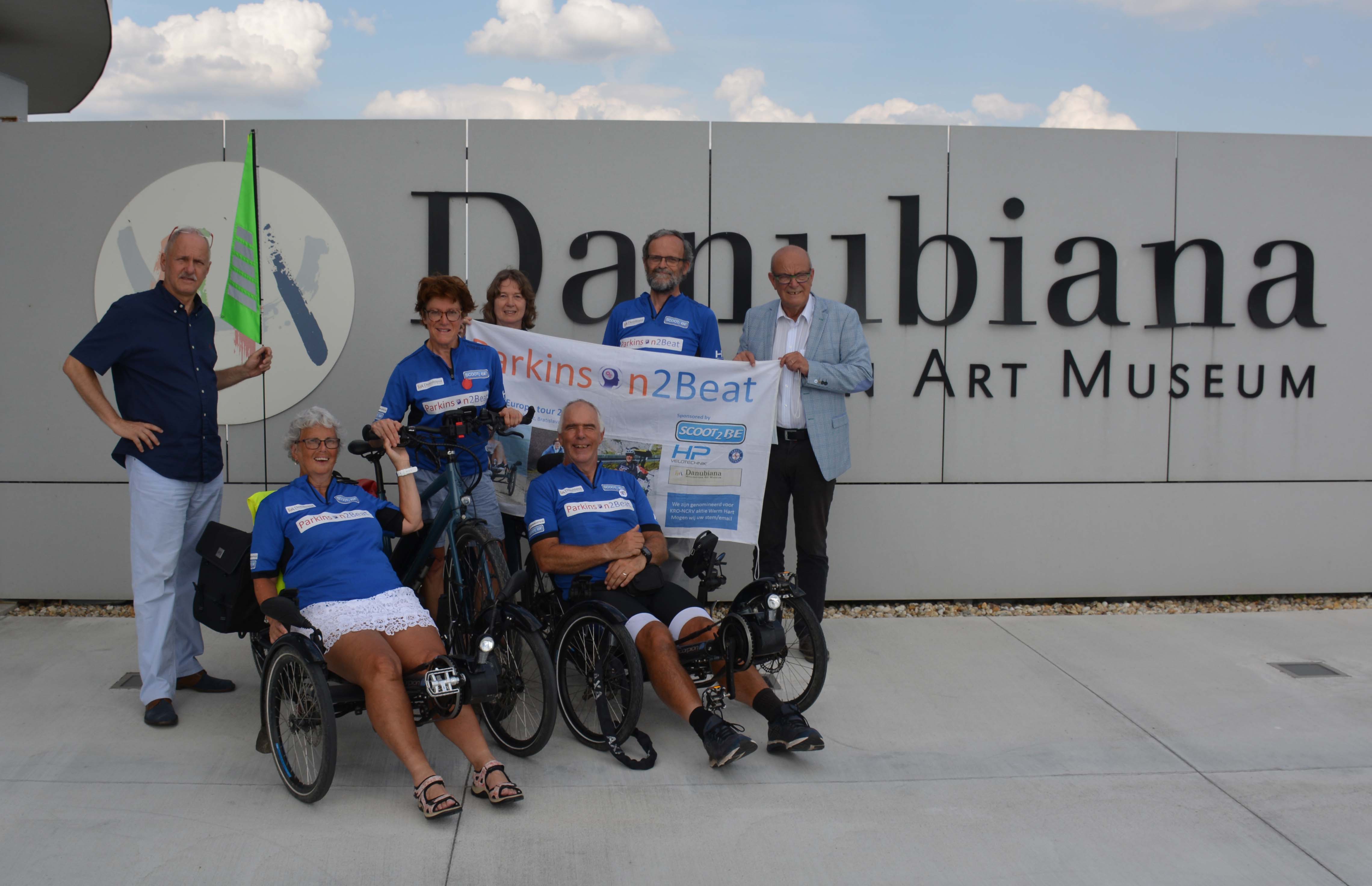 Om 10:00 uur vertrokken we en ik moet zeggen, we hebben nog niet eerder zo lang een zo mooi fietspad gehad. Nadat wij zo’n 20 km hadden gefietst begon dit bijna saai te worden. Daar kwam snel verandering in toen wij het fietspad langs de brug op gingen naar het eiland waarop het Danubiana Meulensteen Art Museum staat. Om 11:10 uur waren wij er al en even later kwamen Paulus en Jacques met de auto, verbaasd over dat wij er al waren.