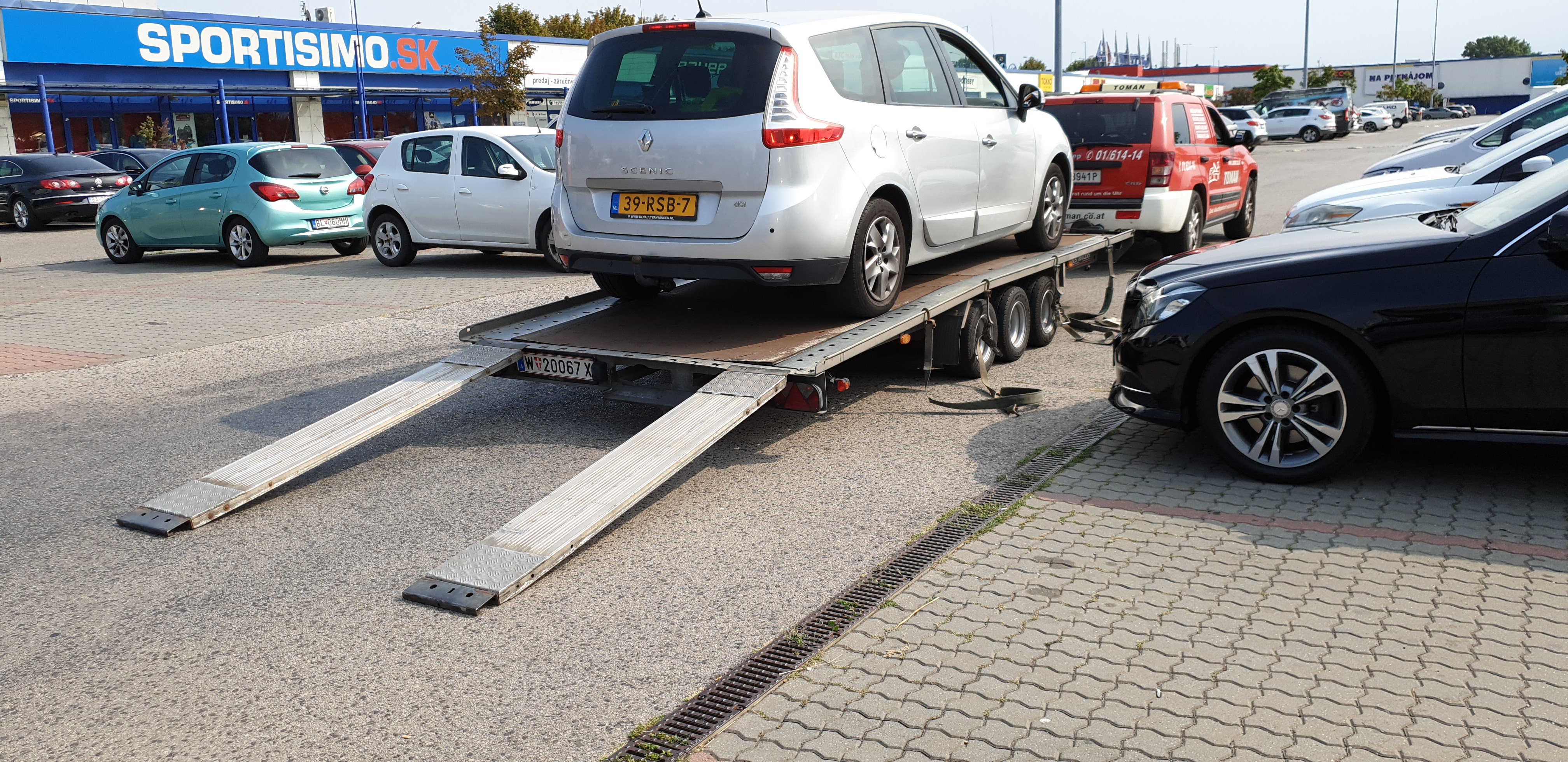Dus contact gezocht met onze eigen Renault dealer in Nederland, en die heeft contact gezocht met Amsterdam. Wat wij gisteren zelf niet voor elkaar kregen, heeft Renault dealer Van Winden alsnog voor ons geregeld. De oplossing: een bergingsbedrijf bracht vanuit Wenen een Volvo V40 met trekhaak naar Bratislava en ruilde die om voor onze Scenic. Zo zouden wij met de vouwwagen naar Nederland kunnen rijden.